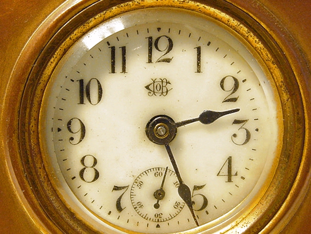 So, if you are a Jennings collector this is a clock for you. This clock has an eight day movement that winds on the back. The hand set knob has probably lost some of its rim as it is a little difficult to grasp. Some of