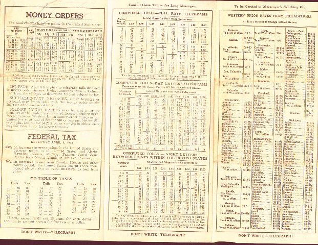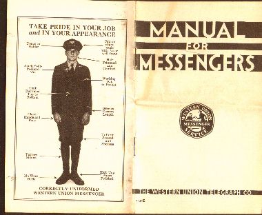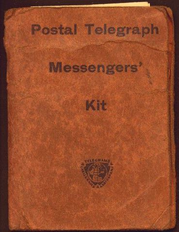 The Western Union Postal Telegraph Messengers' Kit pictured here is in very good condition. It seems to have all its parts. Including a price chart and a manual 10 pages with instructions for the messenger.